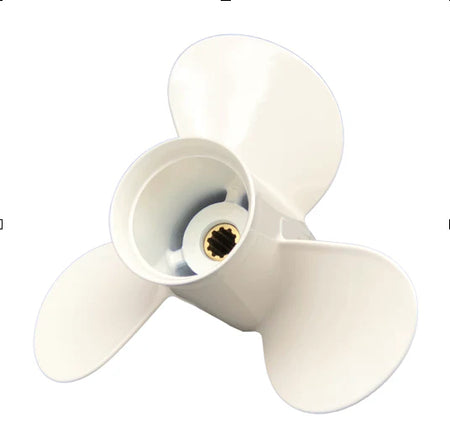 A choice of titanium-aluminium 3-blade propellers from PolaStorm in white with pressed hubs to suit Yamaha & Selva 20-30hp outboards. This range of Yanta Series propellers have similar blade shape to standard Yamaha & Selva "F-Code" propellers. The PolaStorm propellers have some additional features such as stronger blades due to the material used / casting process, plus a durable powder coated finish.
